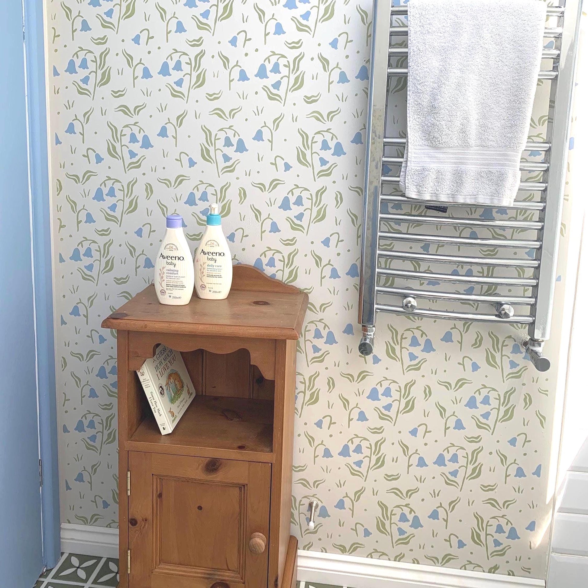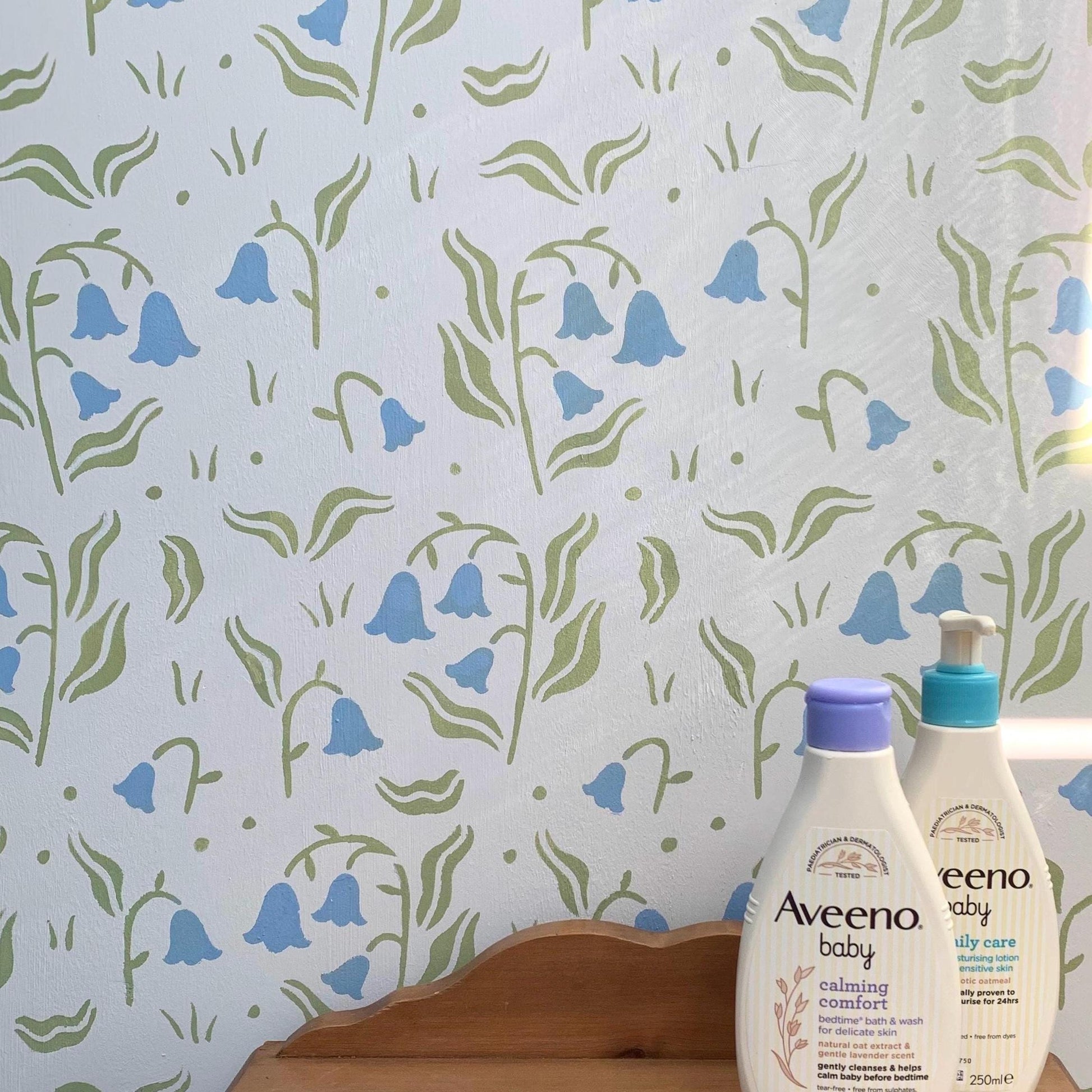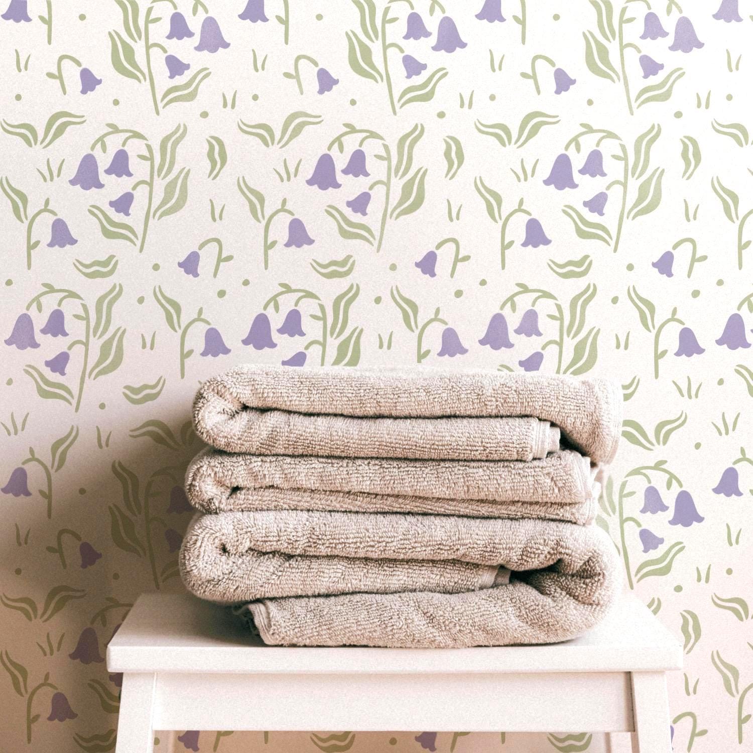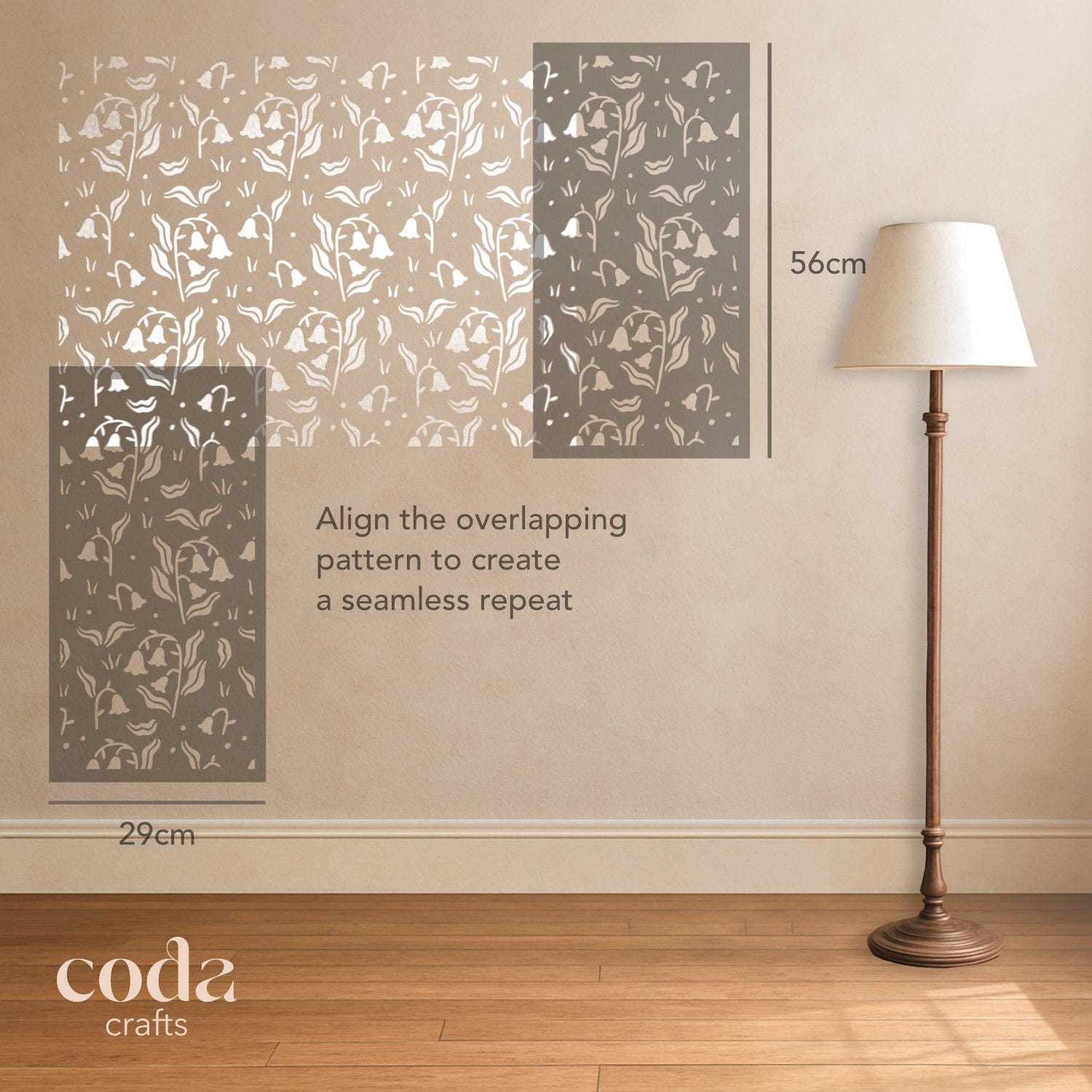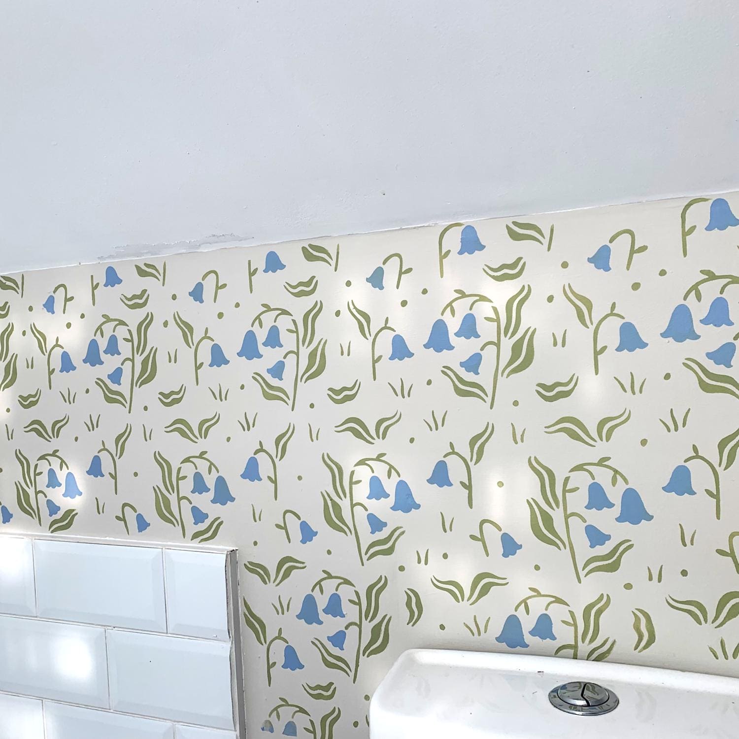 The Bluebell Woods stencil features hand-drawn whimsical bluebell clusters and leaves, to help bring your farmhouse DIY projects to life with some floral spring decor.