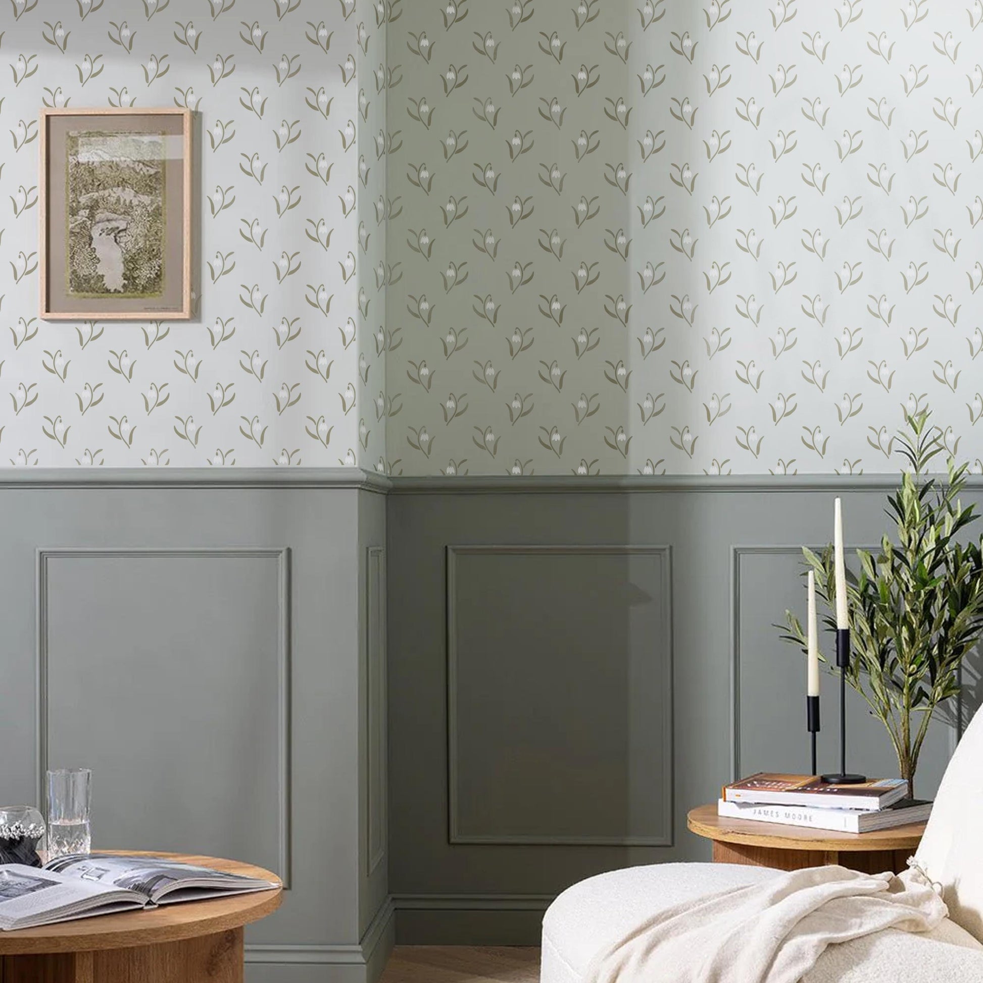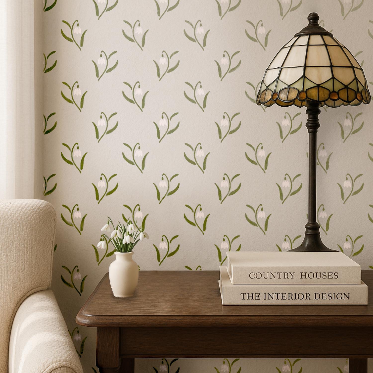 The Snowdrop stencil features delicate hand-drawn flowers, adding a soft floral charm to your cottage home decor projects.