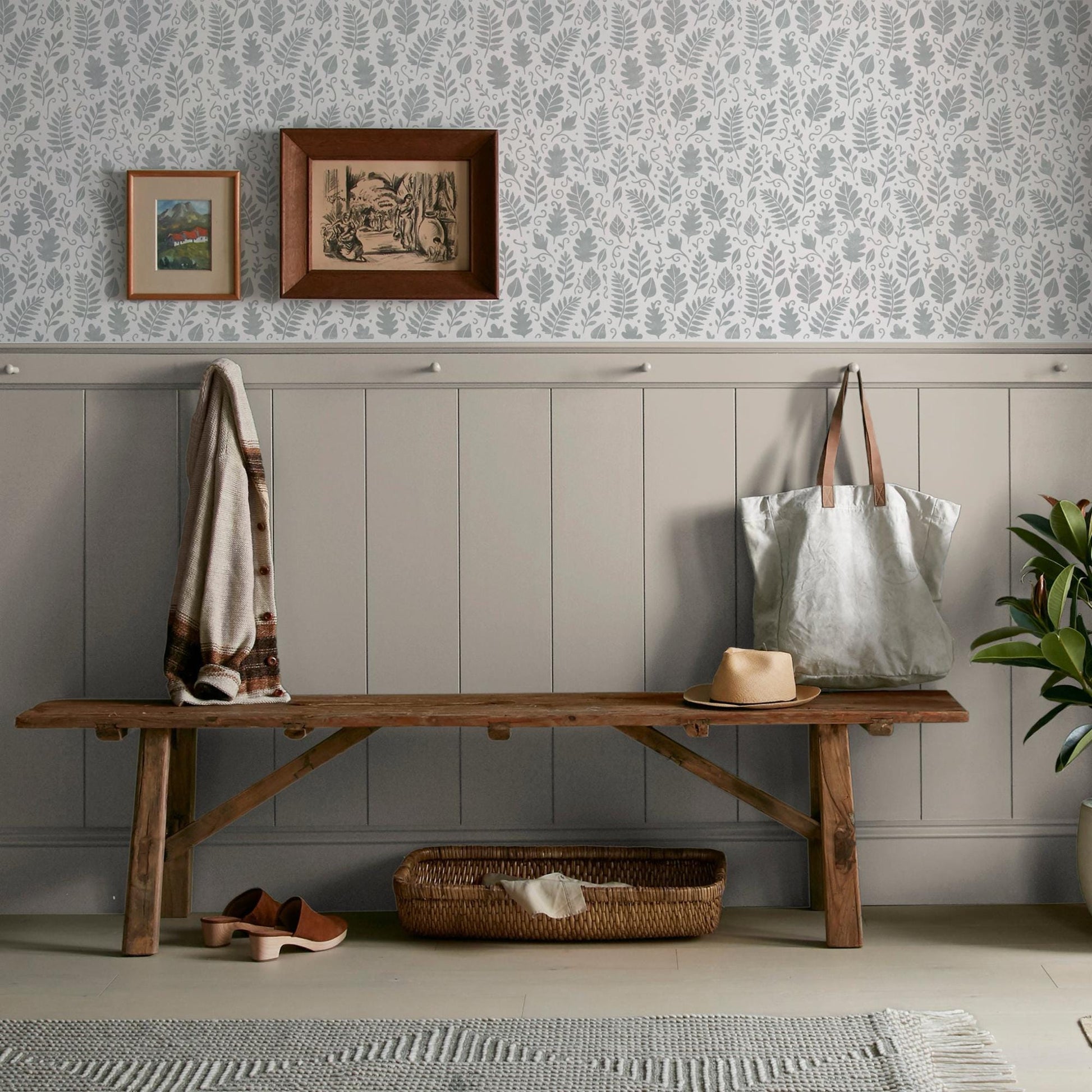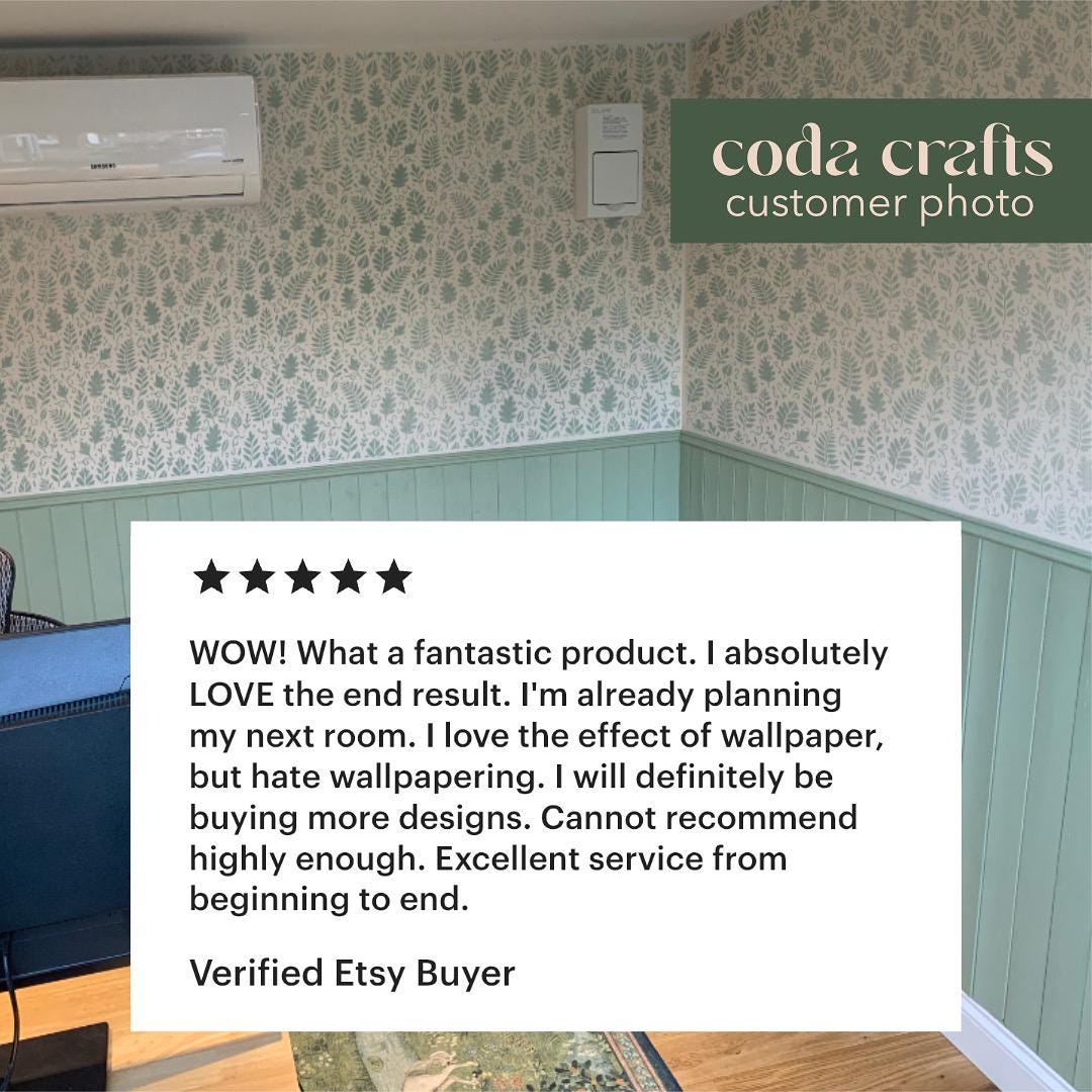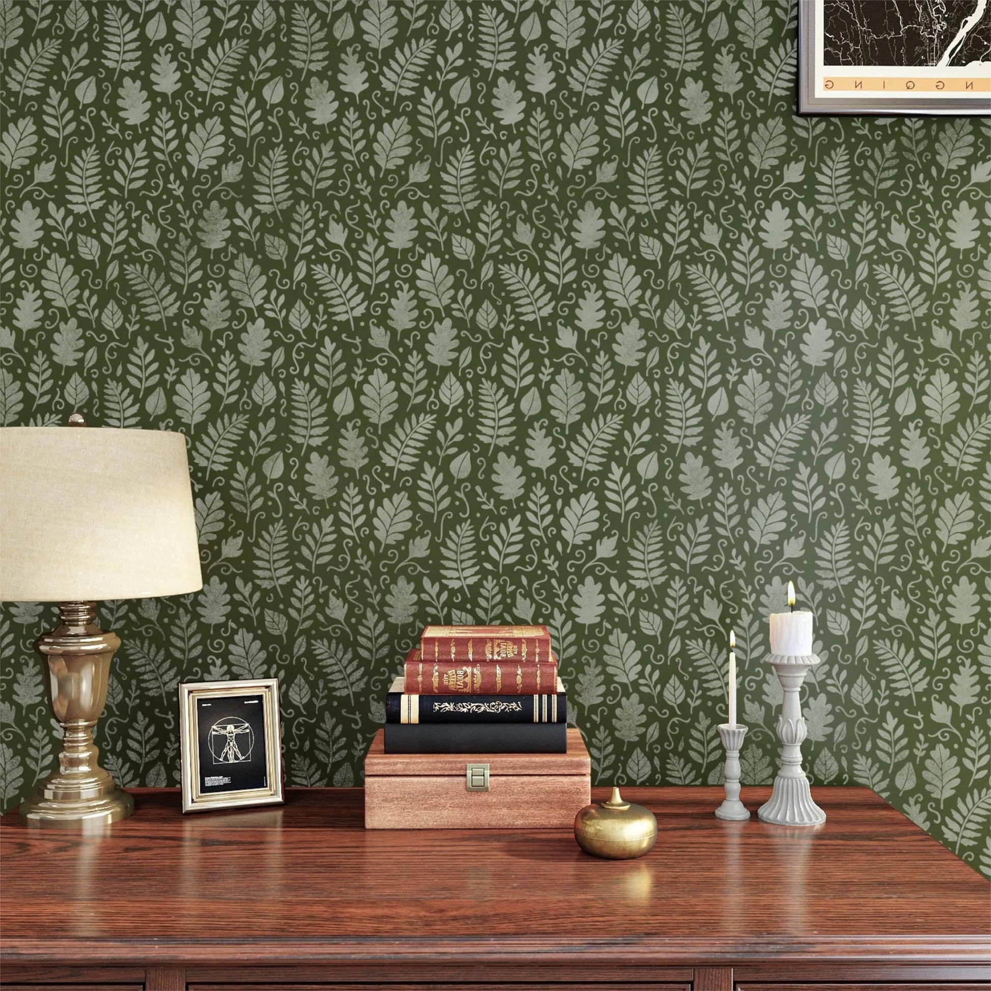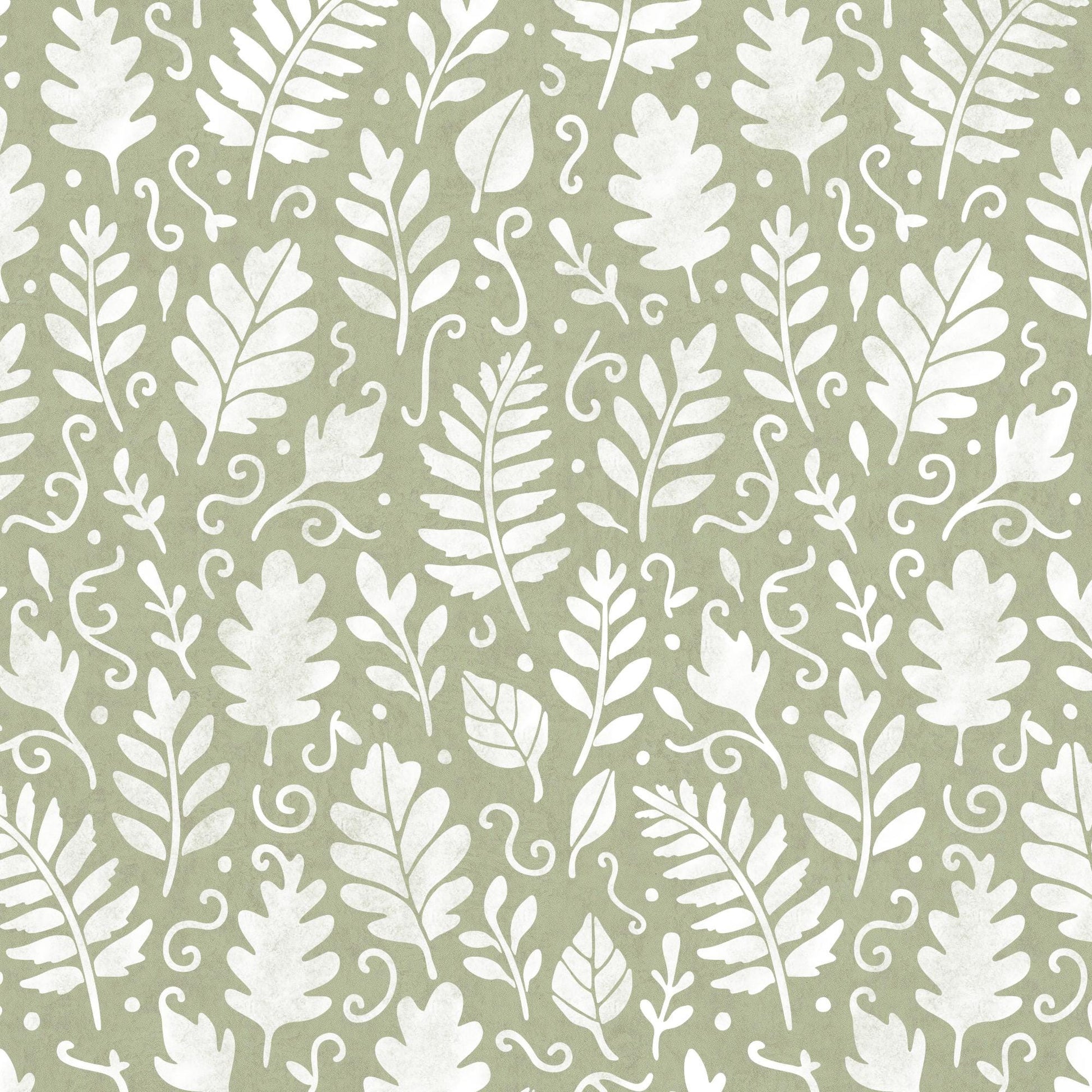 The Woodland Leaf stencil features intricate hand-drawn leaves with a whimsical fantasy touch, ideal for nature aesthetics, a woodland nursery or cosy seasonal decor.